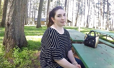Lusty park doll with chestnut hair Brianna gives a good blowjob in the van