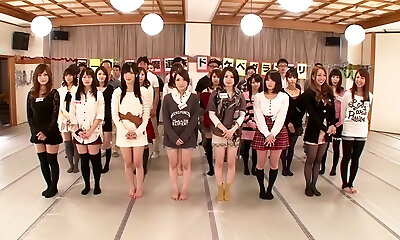 Five Asian Beauties Fucking One Cock in Reverse Gangbang
