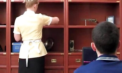 A lewd maid arranged a stormy threesome with a young blonde and a lustful teenager.