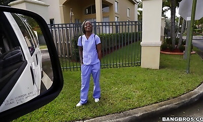 Interracial fucking in the van with uber-cute black nurse Lexxi Deep