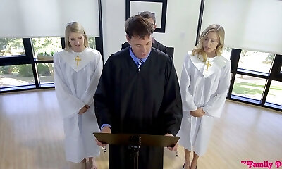 Sinful honey Haley Reed goes wild on a rock hard pole in front of priest