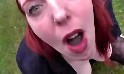 Redhead Deutsch milf works that big stiffy with her ass and throat in the park