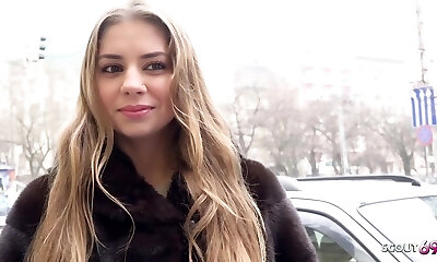 第一个肛门弯曲的自然青少年朱莉娅在拿起铸造与德国侦察员